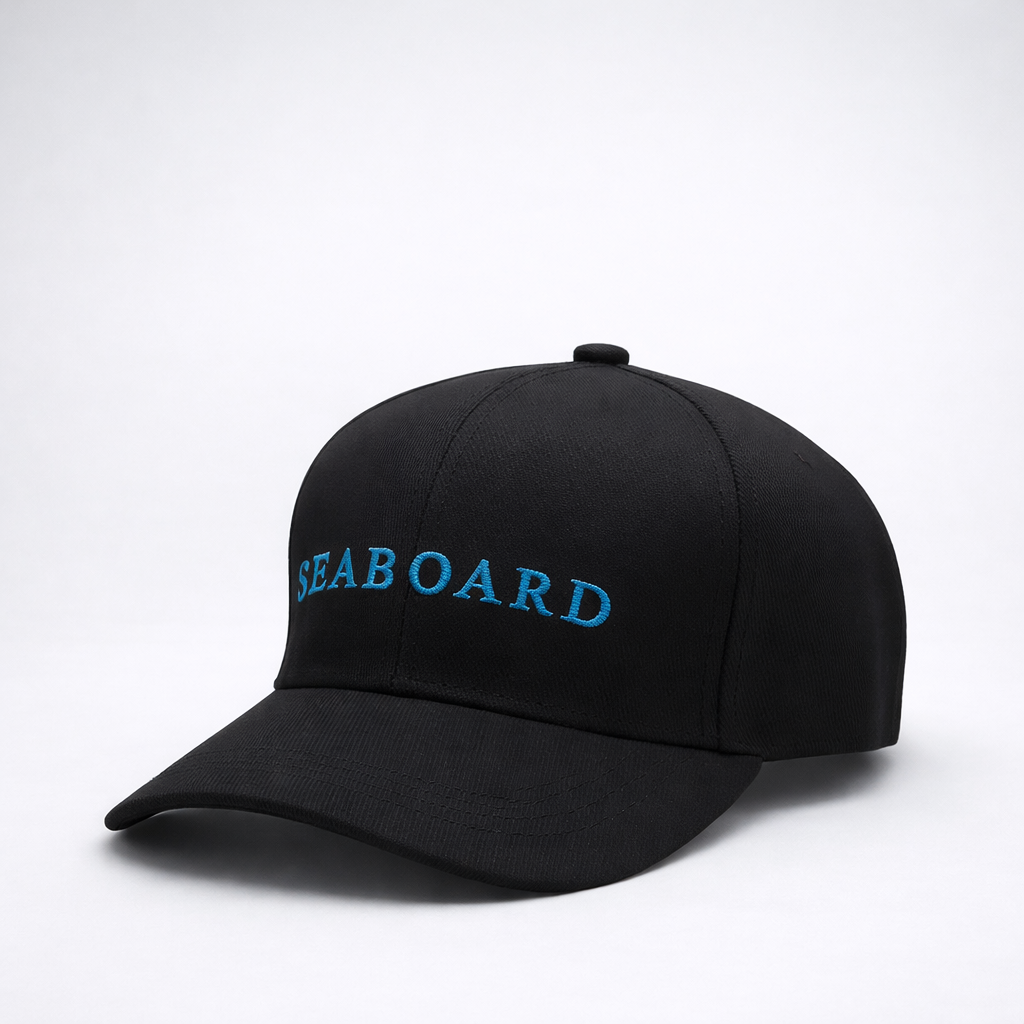 Seaboard Classic Black Cap – is a premium everyday baseball cap designed for a clean, minimal, and professional look. Featuring a matte black finish with embroidered Seaboard logo in signature blue, this cap represents modern corporate lifestyle and brand identity.