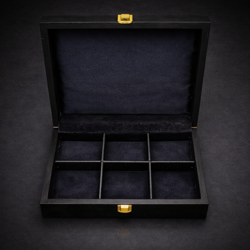 Seaboard Black Wooden Box – Perfect for housing executive gifts such as keychains, pens, notebooks, or complete gift sets, this box adds a timeless, elegant touch to any corporate merchandise.